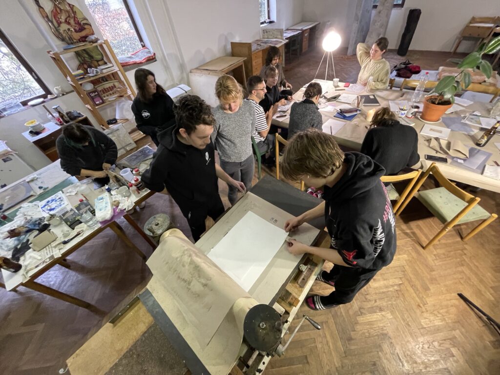 Zachytit kresbou energii z okolí a pak ji skrze grafiku přetavit v něco dalšího. Kurz Od kresby ke grafice… Od plenéru k lisu je zaměřen na odběr vzorků z terénu, který se záhy přenese na výzkum do experimentální laboratoře. Nebo také jinak. Polapení vibrací vznášejících se v okolí, které se postupným meditativním procesem stávají jiným obrazem.